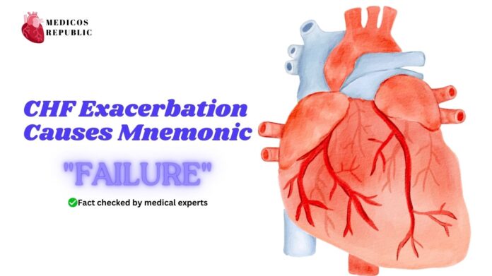 This tabulated format provides a quick reference guide to the “FAILURE” mnemonic, listing each letter along with the corresponding cause of CHF exacerbation.